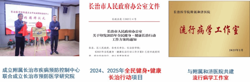 (三)构建了“政-行-校”的多元协同育人机制。学院以行业需求为导向,通过与高校、地方政府、疾控中心及医疗机构建立常态化合作平台,优势互补,资源共享,精准对接公共卫生领域的人才需求,培养适应行业发展的应用型人才。目前与长治市疾病预防控制中心成立beat365正版附属长治市疾病预防控制中心,建立预防医学研究院。与长治市政府合作,参与长治市2025全民健身˙健康长治行动项目,建立健康城市智库,开展流行病学调查,整合居民健康档案、医疗、医保等大数据,建立健康数字化平台,发布居民健康白皮书,进行健康需求的精准识别,带领学生开展健康教育(慢性病、营养膳食等)等健康促进项目,参与区域社会居民健康干预。与附属和济医院共建流行病学工作室,搭建临床科研协作交流的平台。