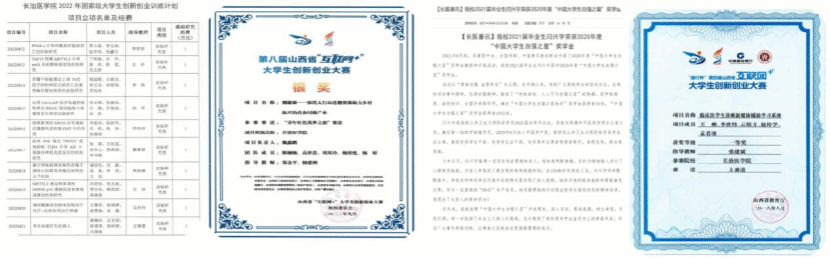 (四)深化产教融合,强化实践教学。学院积极推动“引行入教”,聘请疾病预防控制中心等行业专家担任行业导师,参与专业课教学,使学生能够及早接触公共卫生实践,增强职业认知。按照“双师双能型”教师培养要求,建立了青年教师实践基地锻炼制度,确保教师队伍理论与实践能力同步提升。通过社会实践、专业实践、科研项目等途径不断提高学生动手与解决实际问题的能力。近三年获批国家级、省级大学生创新创业训练项目20余项,指导学生发表学术论文10余篇。在中国大学生医学技术技能大赛、大学生医药数学建模竞赛、大学生创新创业训练计划项目、全国大学生健康教育科普作品大赛、山西省“互联网+”大学生创新创业大赛、“挑战杯”山西省大学生创业计划竞赛、全国民族健身操舞大赛总决赛、少数民族传统体育运动会等项目和赛事中均取得优异成绩。近三年硕士研究生考取率为65%,多名学生进入“双一流”高校及知名科研院所攻读硕士研究生。