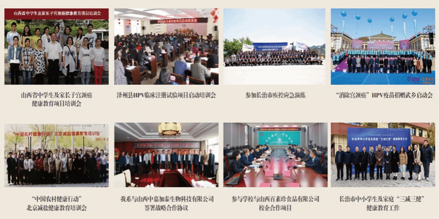 学院紧密对接地方公共卫生的实际需求,专业建设与本地区疾病谱特点紧密结合。积极参与地方政府“全民健身·健康长治”行动项目,开展了长治市居民健康素养现状调查及全民健康素养提升工程、长治市居民营养素养调查及影响因素分析、中小学生及家庭“三减三健”健康教育等多项民生工程。针对本地区食管癌、胃癌高发的现状,学院建立了长治市上消化道癌症人群队列,开展了食管癌海绵拉网筛查技术研究,并进行了广泛的健康宣教活动,累计覆盖4万余人次。此外,对长治市156个行政村的居民饮用水和自种粮食进行了采样及检测,完成了《长治市居民饮用水水质调查报告》和《长治市居民自种粮真菌毒素污染调查报告》。这些合作的开展显著提升了地区居民的健康水平,为学院的教学与科研积累了宝贵的实践经验,进一步增强了学院服务地方社会的能力和水平。