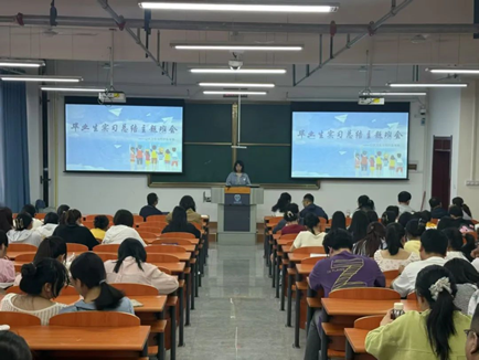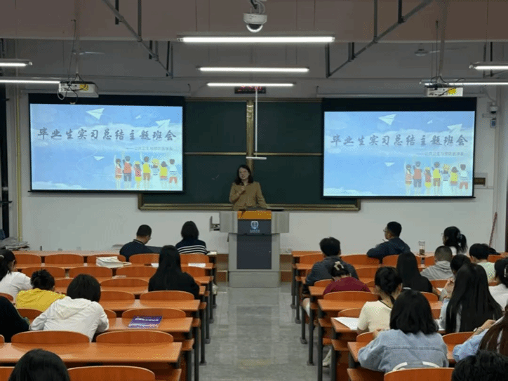 5 月 16 日 ,公共卫生与预防医学系在润智楼 301 教室召开 2025 届毕业生实习总结会。系党总支副书记李宁,副主任饶华祥、翟艳丽,教学科研科科长龙泽清,班导师杜沂倩、李雅杰、闫宁、申科敏及全体2025届毕业生参加会议。会议由辅导员申慧主持。
