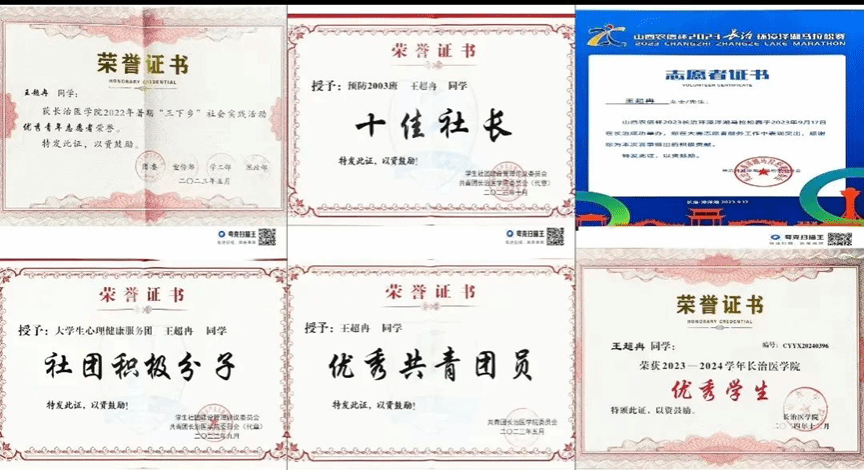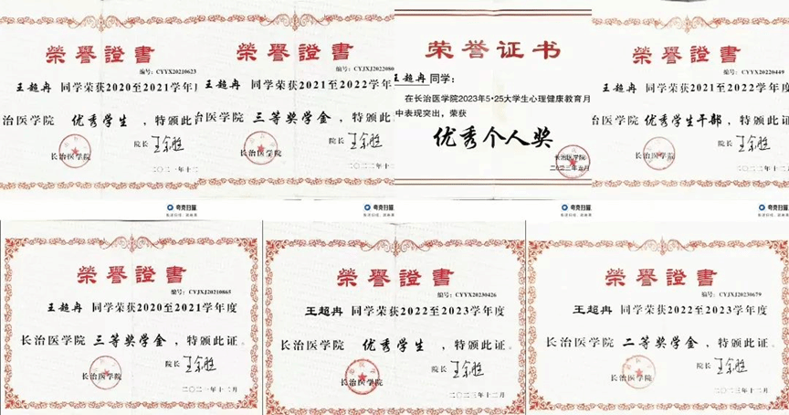 王超冉笃信 “学海无涯”,在大学期间始终奋发向上。她先后三次获得校级三等奖学金、一次校级二等奖学金,还多次获评 “优秀学生”“优秀学生干部”,用勤勉诠释着对学业的敬畏。